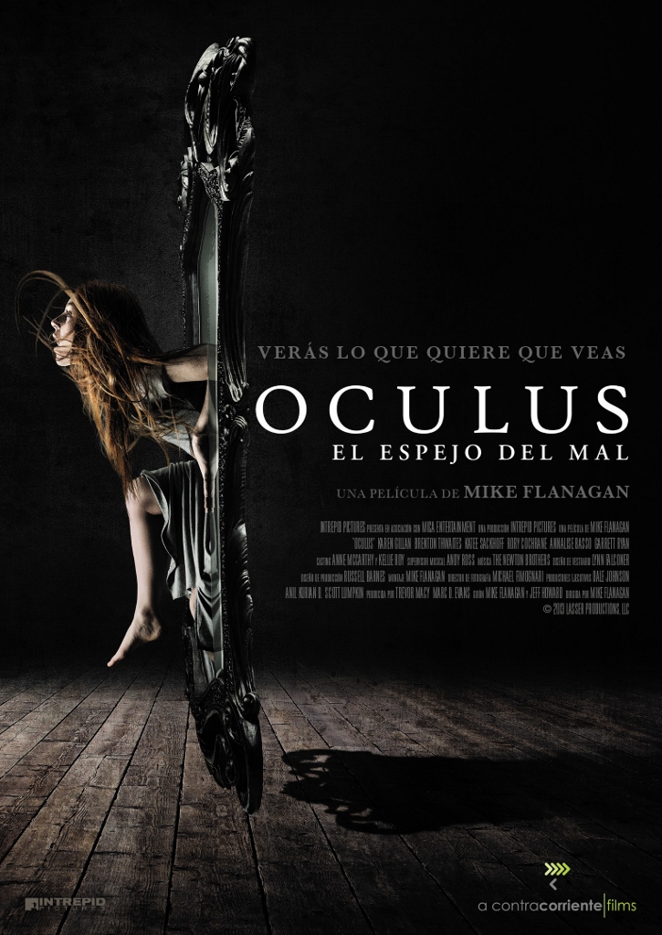 Fantasmas, niños con miedo y reflejos encantados son los elementos que nos guarda la primera de la tanda, Oculus. El espejo del mal (Mike Flanagan, 2013). Se basa en un cortometraje previo hecho por el mismo autor y consigue resultar algo más que la idea breve inflada para rellenar la duración de un largo, no obstante el trascurso de un último tercio más descuidado. Siguiendo la estela de referencias recientes como Paranormal Activity o Expediente Warren, la película muestra personalidad propia y la historia tiene el mérito de incorporar unas connotaciones psicológicas no muy habituales en otras similares.