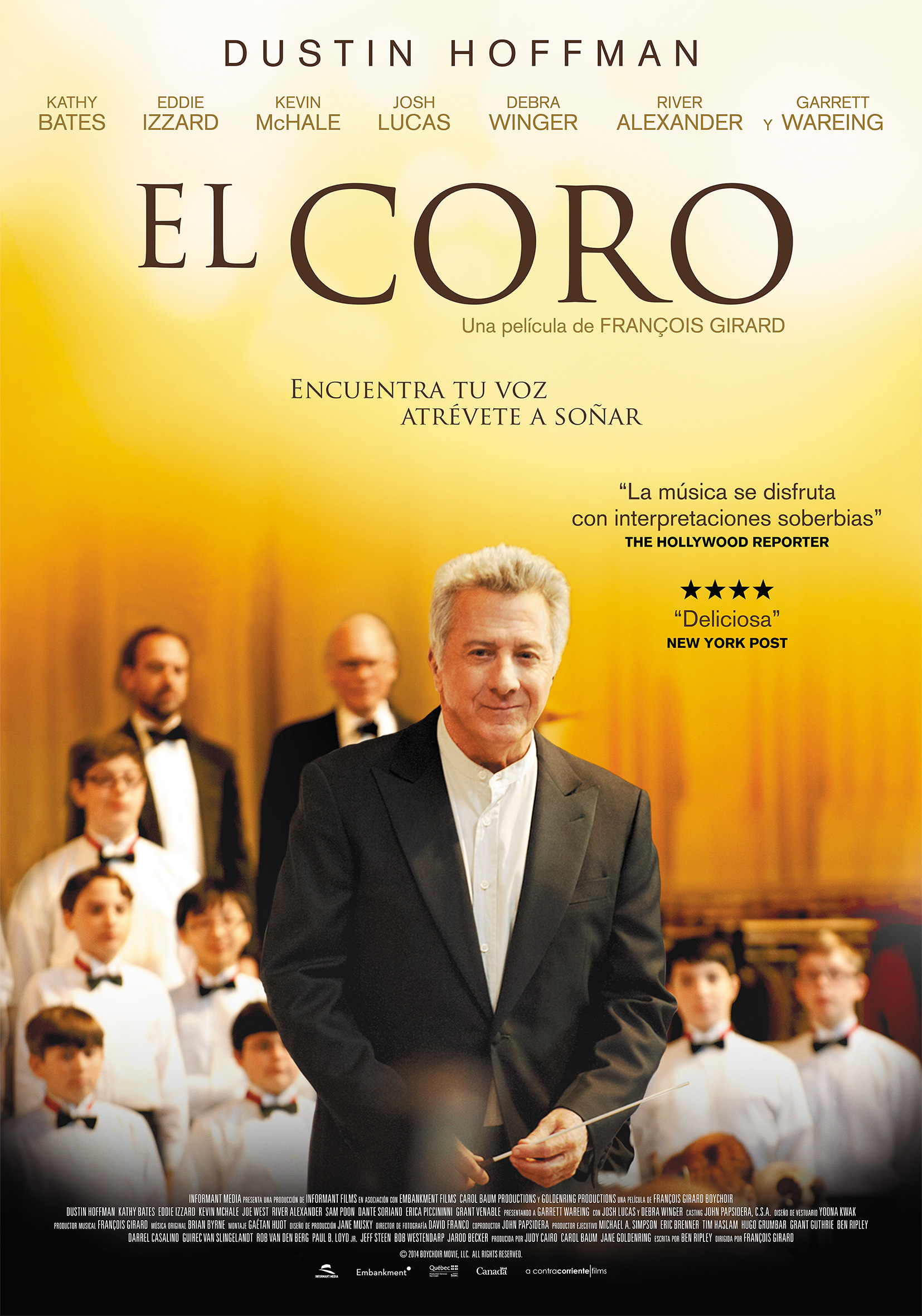 Esta fórmula se repite en El coro, el nuevo film de François Girard (El violín rojo, Seda), que a ritmo de la música coral del más puro clasicismo de Haydn nos cuenta una historia llena de buenas intenciones y trufado de mensajes de superación personal. En ella, un chico problemático (madre descuidada y padre a la fuga) busca a través de la violencia su lugar en el mundo. Tras la muerte de la madre en un accidente, el joven, al ver en él un talento especial para el canto, será enviado a un exclusivo internado donde el eje central es la enseñanza a través de la música. Allí su actitud callejera contrastará con el nivel elitista de los demás alumnos y comenzará su odisea hasta la reinserción. Como no podía ser de otra manera, un miembro del cuerpo docente destacará por encima del resto para enseñarle cuál es el camino correcto. Quizás el huraño profesor que encarna Dustin Hoffman en El coro no sea tan radical en sus enseñanzas como los antes nombrados (al menos no hace sangrar a sus alumnos), pero sigue esa estela de docentes de armas tomar e inmejorables en su campo que con su hermética personalidad consigue, pese a todo, la excelencia en los resultados.