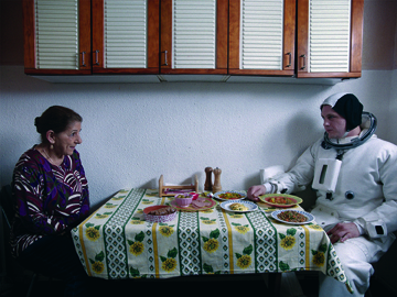 Hombre de pocas palabras también en el cine, Benchecrit se encuentra cómodo rodando sobre los numerosos silencios de sus personajes. E igualmente, ajustándose a las posibilidades de composición del formato 1:33. La pequeña pantalla enmarca los salones y otros espacios de reducidas dimensiones y ayuda a que la mirada entre en las celdillas de una colmena, sin todo aquello que cabría dentro de un recuadro más alargado y con las ventanas como único punto de fuga. Destaca la fuerza que destila la sencilla realización en las escenas protagonizadas por Valeria Bruni-Tedeschi, que además están construidas a conciencia en torno a la formidable labor de la intérprete en su papel de enfermera de noche. Y en lo referente a la escritura, es el relato del astronauta (Michael Pitt) y la viuda magrebí (Tassadit Mandi) la parte donde brilla con mayor emoción la solidaridad y la ternura, que son los dos elementos que comparten estas tres composiciones amasadas a partir de la sustancia emocional que un día, clic, Benchecrit capturó con su cámara de fotos.
