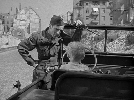 Los ángeles perdidos no es tan amarga como Alemania año cero, que no deja abierto ningún resquicio abierto a la esperanza. La película de Zinnemann cuenta dos historias: la general de los niños traumatizados por la guerra y la particular de uno de ellos que encuentra la protección de un soldado americano  —Montgomery Clift, en su primera aparición en la pantalla — y logrará reunirse con su madre, que también ha sobrevivido a un  campo de concentración. Pero que su final permita un respiro no significa que sea una película blanda ni complaciente, como han afirmado algunos críticos. Zinnemann impregna al espectador del miedo que sienten los niños: miedo a moverse, miedo a comer, miedo a reír o a jugar, miedo a hablar, miedo a la autoridad. Un miedo tan básico y primario que algunos renunciarán a su identidad para salvar la vida, como el chico judío que adopta el nombre de un niño cristiano muerto y luego es incapaz de recordar el suyo verdadero. Un miedo tan visceral que otros prefieren morir a caer en manos de un soldado; de cualquier soldado, vista el uniforme que vista. Y a través de su miedo, Zinnemann consigue que logremos atisbar parte del infierno que han debido atravesar.