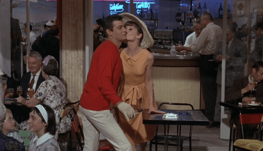 Por eso Richard Quine cuenta en su reparto con dos actores de la vieja escuela: William Holden, el Golden Boy, y Audrey Hepburn, elegante como una gacela. Y, a la vez, cuenta con varias estrellas de cine clásico para distintos tipos de cameos, tanto visuales como auditivos: las voces de Frank Sinatra y Fred Astaire, el físico de Marlene Dietrich o de Mel Ferrer . Y aparece un maravilloso personaje secundario en la historia de Rick y Gaby que se rebela porque no quiere su papel (algo muy pirandelliano) y porque, además, todo el mundo le recuerda una y otra vez que su protagonismo en la película no tiene importancia. Los demás personajes confunden su nombre o no valoran sus acciones. Y este individuo tiene el rostro de Tony Curtis, que está divertídisimo. Hace una parodia de los actores que empleaban otros métodos de actuación, como el de Stanislavski, o de aquellos que buscaban otros horizontes interpretativos en las distintas olas europeas, sobre todo en la nouvelle vague. Precisamente, la mecanógrafa Gabrielle Simpson le explica a Benson que ha trabajado con uno de los nuevos directores, y esta le detalla una serie de títulos, que claramente se burlan del tipo de historia que interesa a las nuevas cinematografías, más cercanas a la realidad, a lo cotidiano, a los tiempos muertos que siempre se habían evitado filmar.