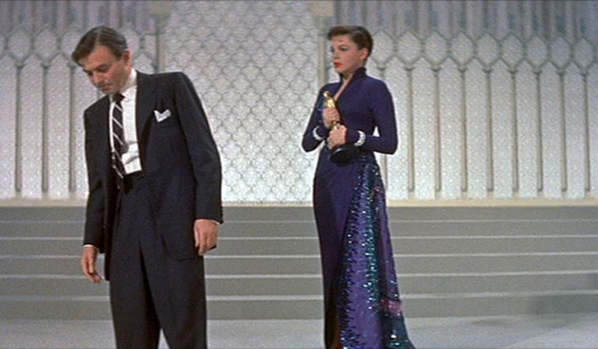 Los momentos en que están juntos son los más hermosos y emotivos de la película. Surge la química entre Judy Garland y James Mason. Sus miradas y sus gestos de cariño traspasan la pantalla. Además de alguna de las secuencias que ya hemos mencionado, hay otras como la petición de matrimonio que queda grabada en el estudio y de la que son testigos un montón de compañeros. O el amargo momento en el que él descubre avergonzado en una sala de un juzgado, después de que lo hayan detenido por una borrachera, la presencia de su esposa, pero la mirada entre ambos se transforma en cariño y comprensión. O el momento que se repite a lo largo de la película, como un leitmotiv: cada vez que Esther entra en una casa o en una habitación, Norman le pide: «¿Puedo mirarte otra vez?», y esta se asoma de nuevo antes de desaparecer.