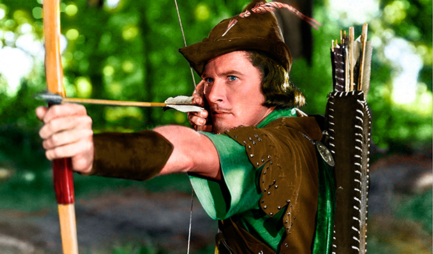 Scaramouche se estrenó en 1952, pero George Sidney había dirigido cuatro años antes otra cinta de capa y espada que también marcó mi infancia, aunque en esta ocasión no sabría decir si conocí antes el libro o la película, pues Los tres mosqueteros es una de las primeras novelas que recuerdo haber leído. Esta vez la versión cinematográfica sí es radicalmente infiel a Dumas, pero eso tampoco importa porque derrocha talento. Sidney era un especialista en musicales —venía de rodar Levando anclas y Hasta que las nubes pasen, biografía de Jerome Kern— y consiguió con Los tres mosqueteros todo un oxímoron: hacer un musical sin música. Algo de esto había ya en otras películas anteriores de espadachines. En Robín de los bosques (1938), por ejemplo, Errol Flynn, embutido en aquellas impolutas mallas de color verde chillón, estaba más cerca de los bailarines de Kiss me Kate, el musical de Cole Porter sobre La fierecilla domada que dirigió más tarde el propio Sidney en 1953, que de un auténtico arquero medieval. Sus peleas a espada eran verdaderos ballets, desplegados sobre la banda sonora de Erich Wolfgang Korngold.